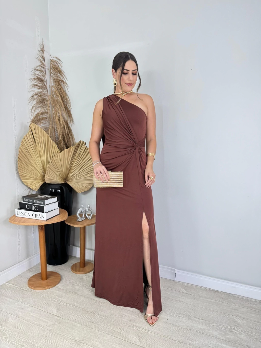 - Um ombro só: caimento fluido e elegante