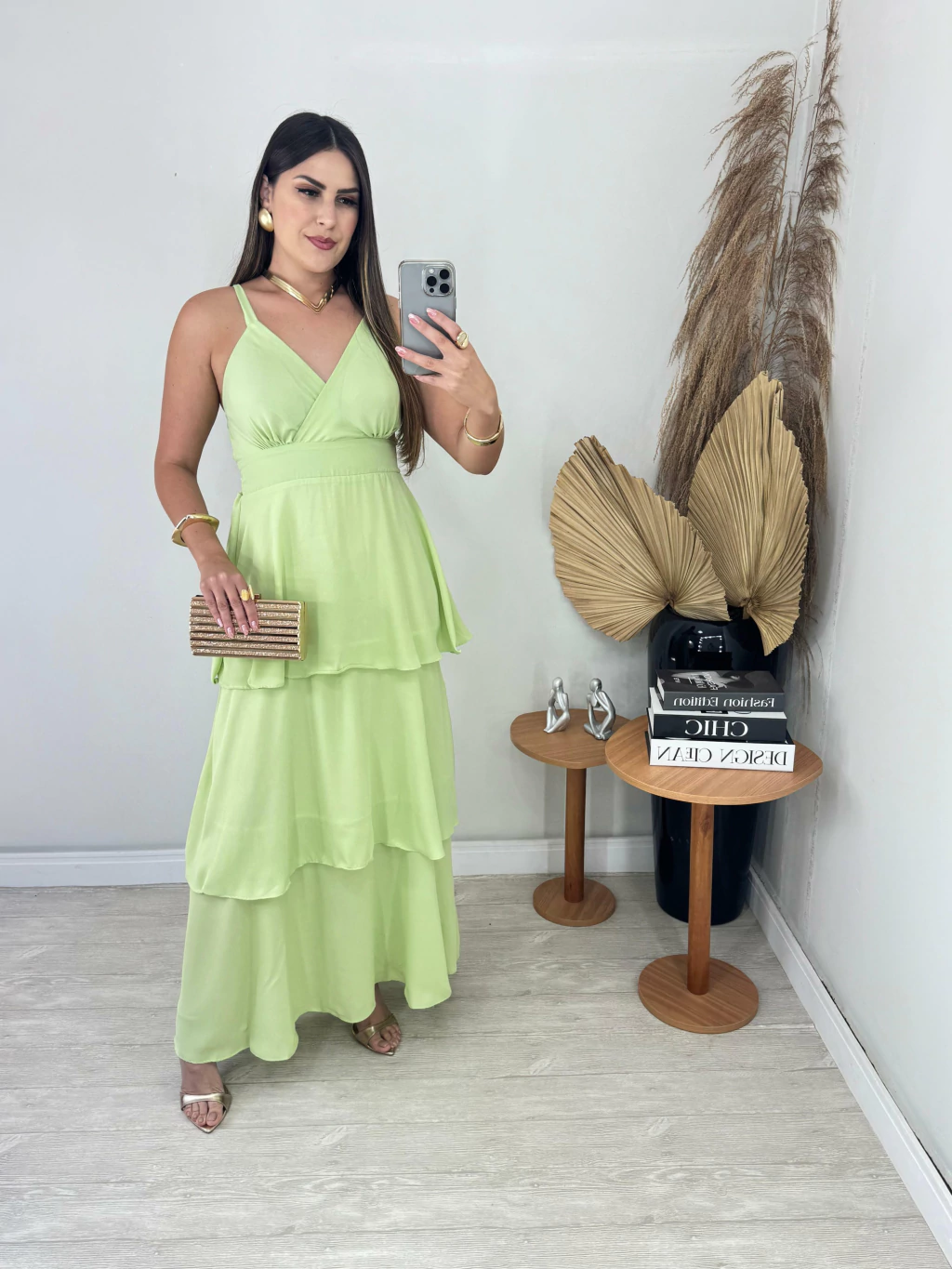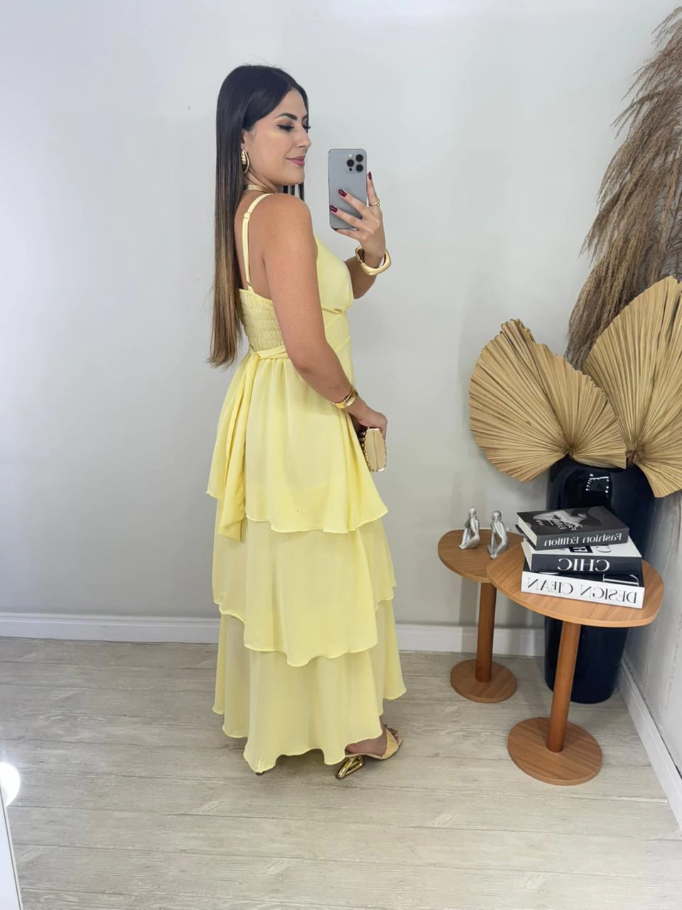 Transforme seu visual com a suavidade do chiffon e o charme dos babados. O Vestido Safine espera por você! 🌸
